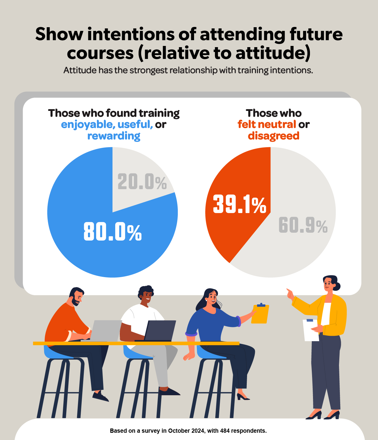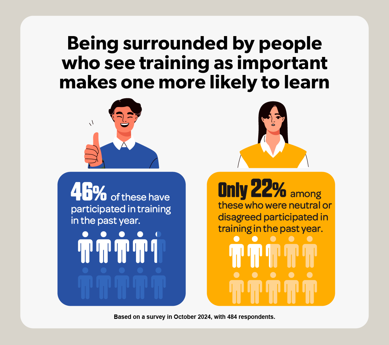 Nearly 8 in 10 respondents agreed that continuous training is essential to stay employable. But when it came to action? Less than half (46%) had taken part in any formal or informal training in the past year.