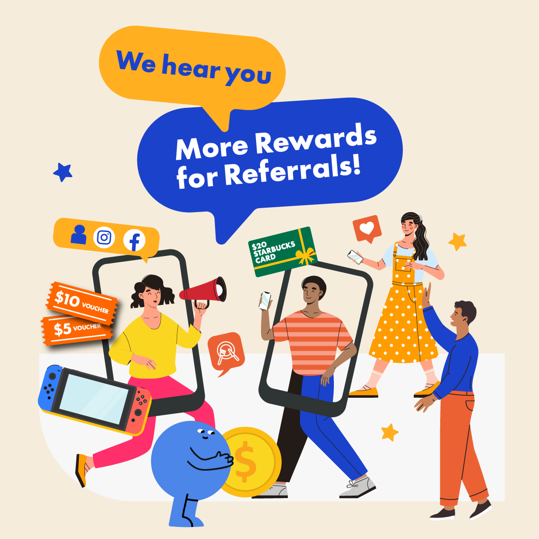 Get up to $10 Vouchers PLUS Lucky Draw Chances for every successful referral!